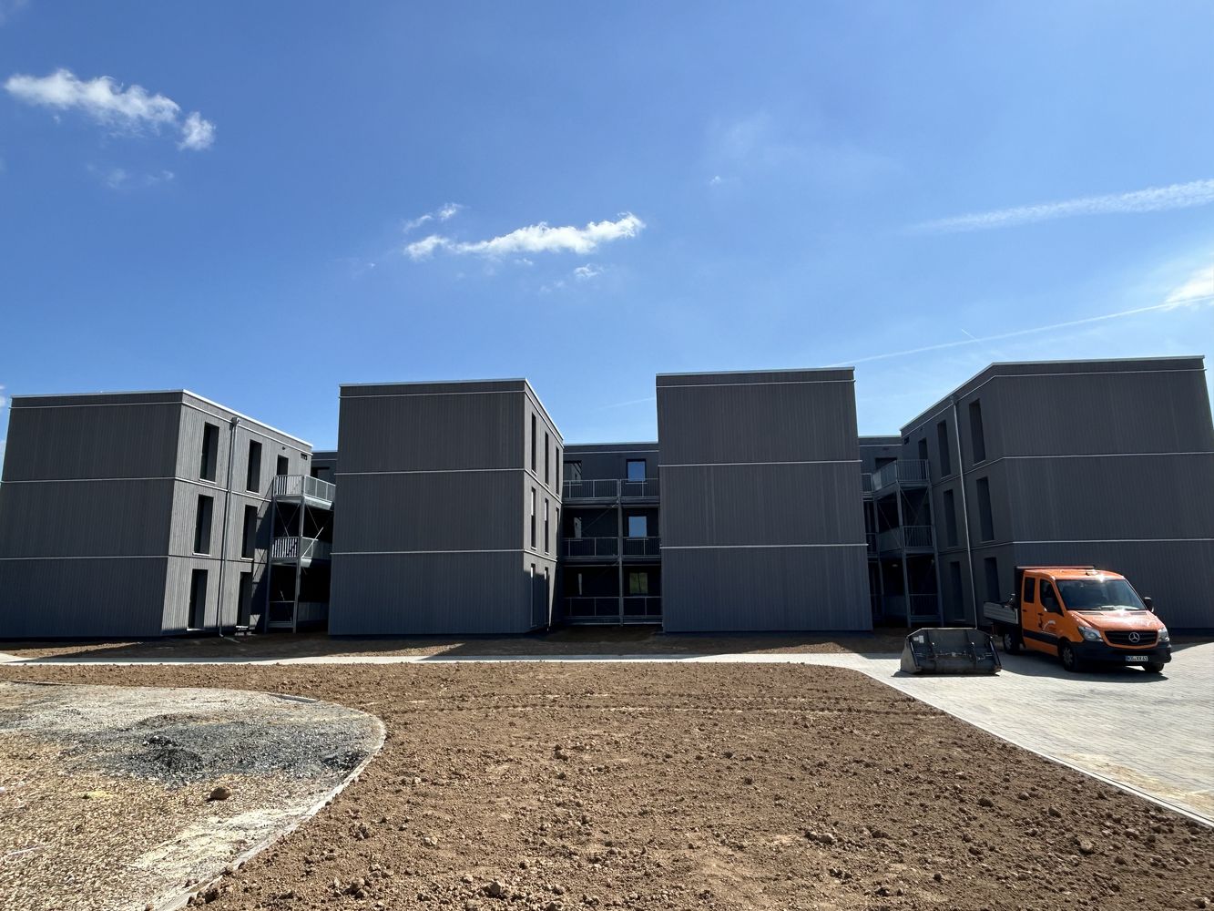 Das Gebäude wurde in 3D-Modulbauweise umgesetzt und schlüsselfertig im Werk ausgebaut. Genau darin liegt die Stärke des Konzepts: hohe Vorfertigung, kontrollierte Produktionsbedingungen und eine präzise Montage auf der Baustelle. Für öffentliche Auftraggeber ist das ein starker Ansatz, wenn kurzfristig nutzbarer Wohnraum geschaffen werden muss und zugleich Wert auf Qualität, Effizienz und saubere Abläufe gelegt wird.